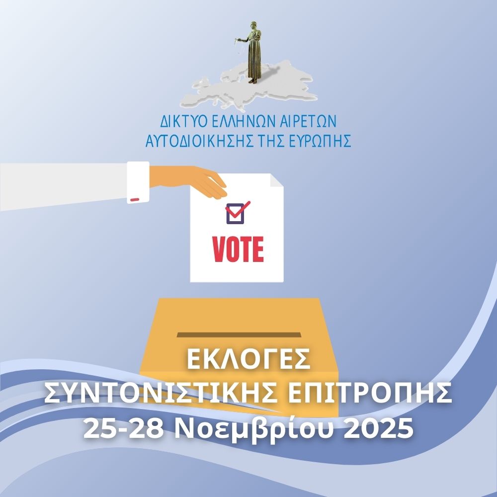 Ηλεκτρονικές εκλογές για τη νέα Συντονιστική Επιτροπή του Δικτύου Ελλήνων Αιρετών Αυτοδιοίκησης της Ευρώπης – 25 έως 28 Νοεμβρίου 2025