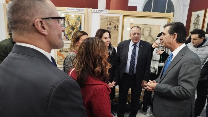 Ο υφυπουργός Εσωτερικών, αρμόδιος για θέματα Μακεδονίας και Θράκης, Κώστας Γκιουλέκας, υποδέχθηκε την αντιπροσωπεία των εκλεγμένων ομογενών βουλευτών και γερουσιαστών ξένων χωρών, τρεις από τις Ηνωμένες Πολιτείες, δύο από τον Καναδά και δύο την Αυστραλία και τους ξενάγησε στην ιστορική έκθεση που λειτουργεί αυτή την περίοδο στο Διοικητήριο, πριν συζητήσει μαζί τους θέματα κοινού ενδιαφέροντος.